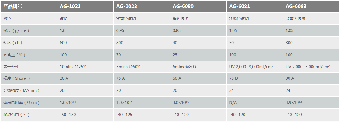 产品特点:1、低粘度,良好的可操作性2、良好的界面浸润性3、优异的电气绝缘性4、固化速度快5、优异的附着力6、符合RoHS REACH环保